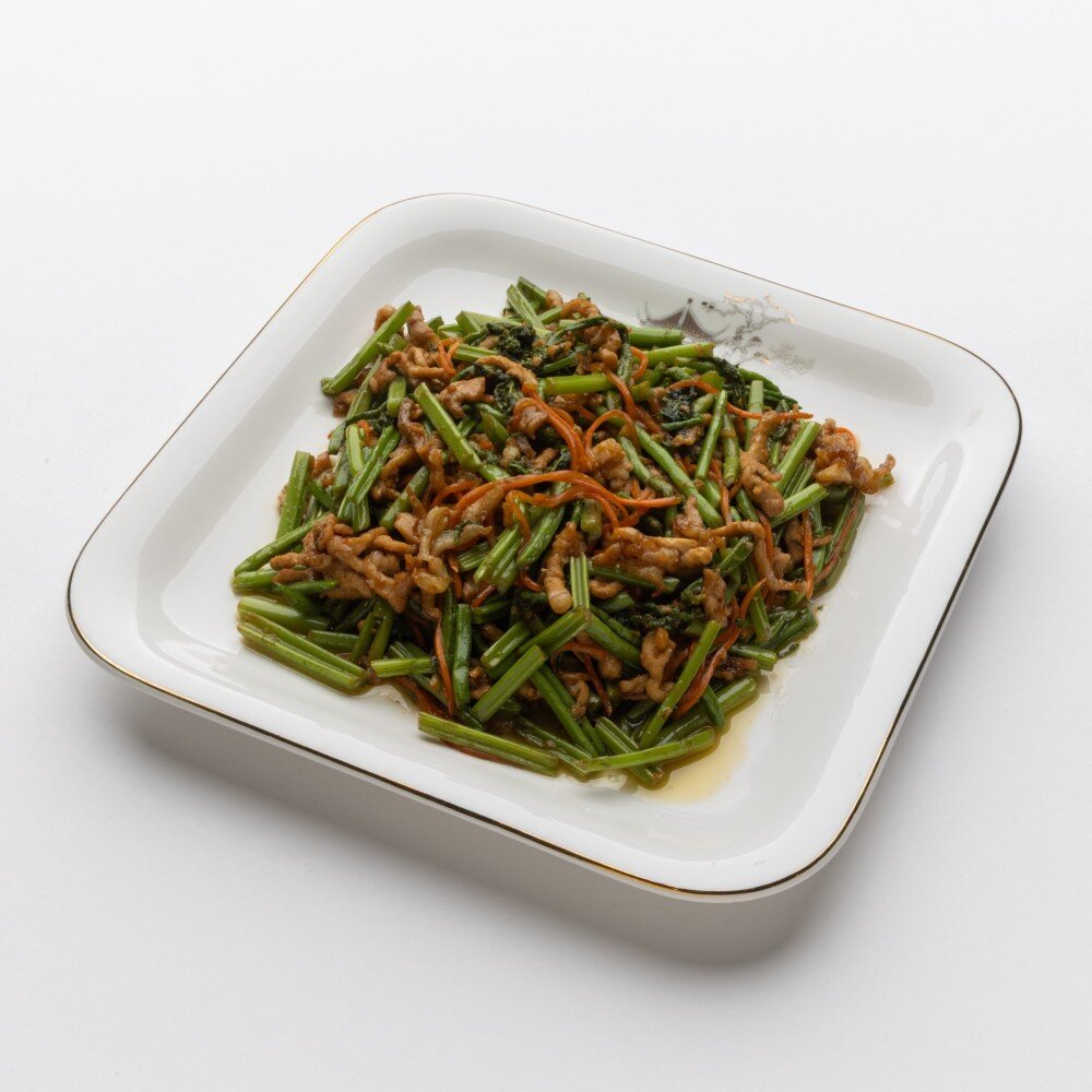 Побеги чеснока со свининой
