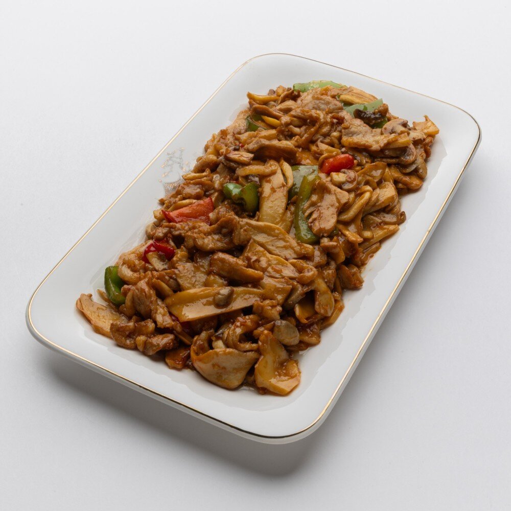 Шампиньоны со свининой и перцем